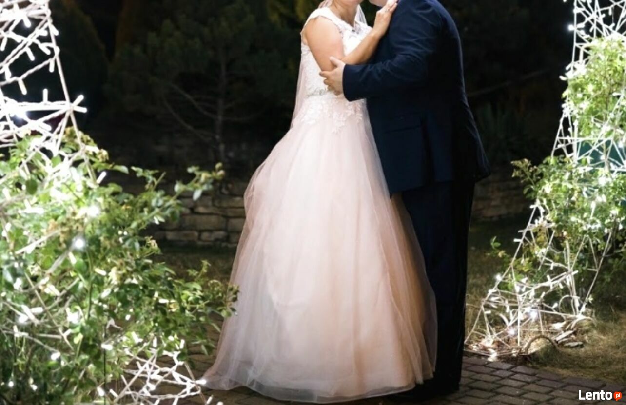 Przepiękna suknia ślubna typu princeska + GRATISY!Rozmiar: UK 16 / EU 42-44 Kolor: Ivory z subtelnym odcieniem brzoskwini Stan: Użyta tylko raz – jak nowa Cena: 2600zł plus koszt przesyłki- do rozsądnej negocjacji